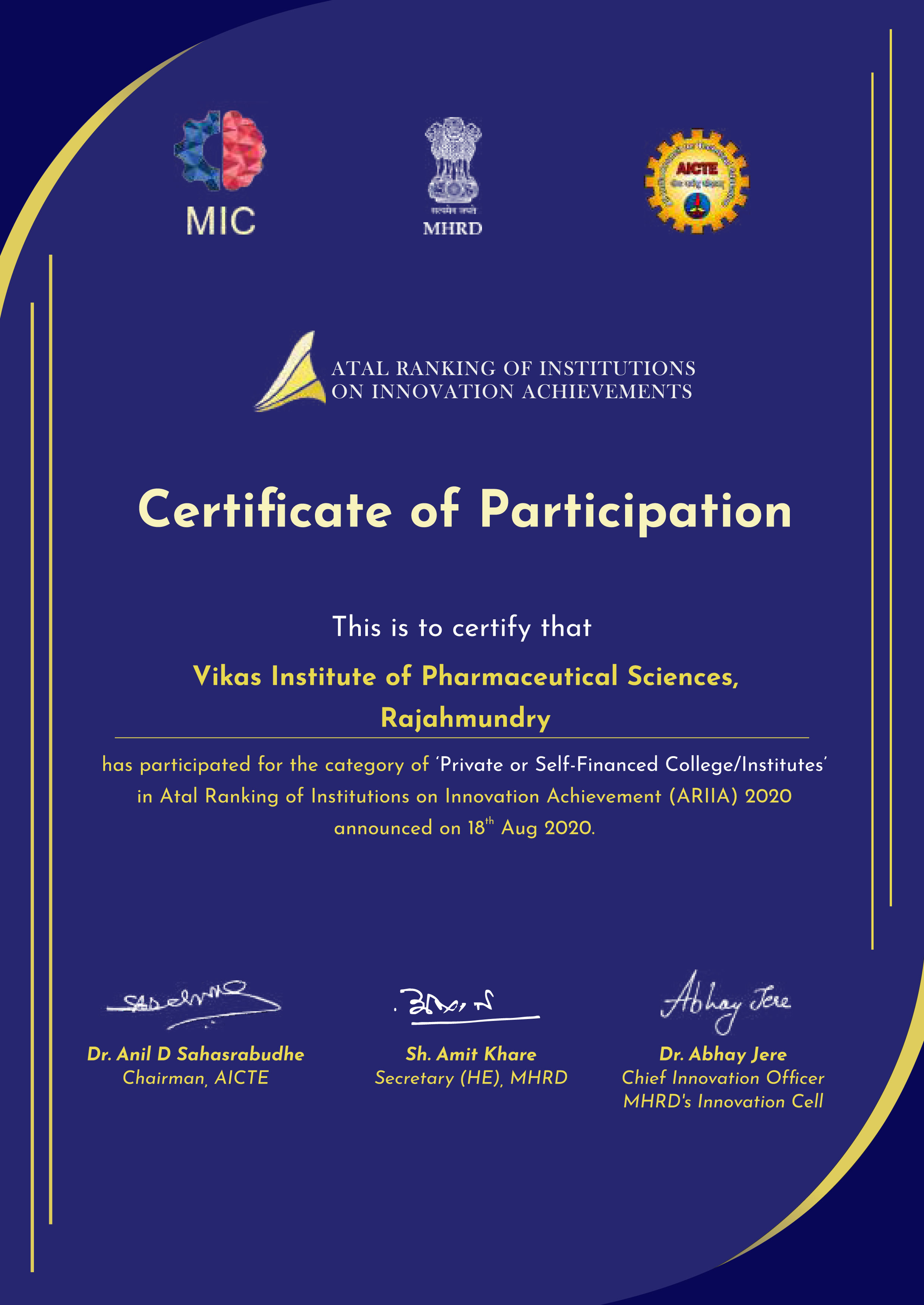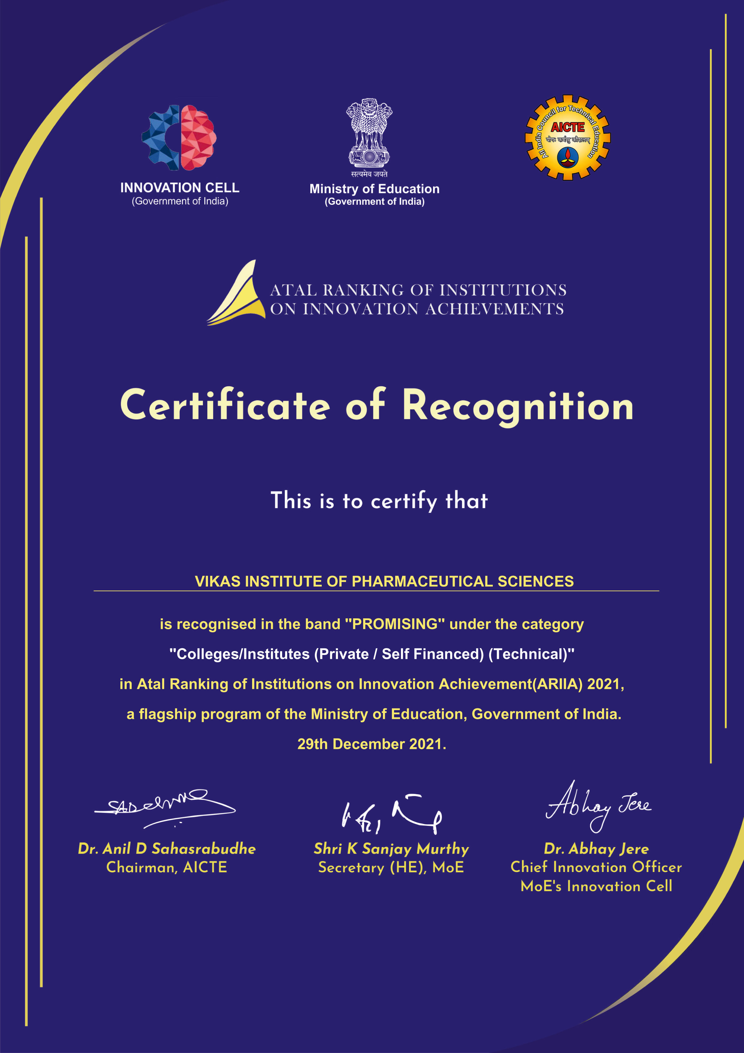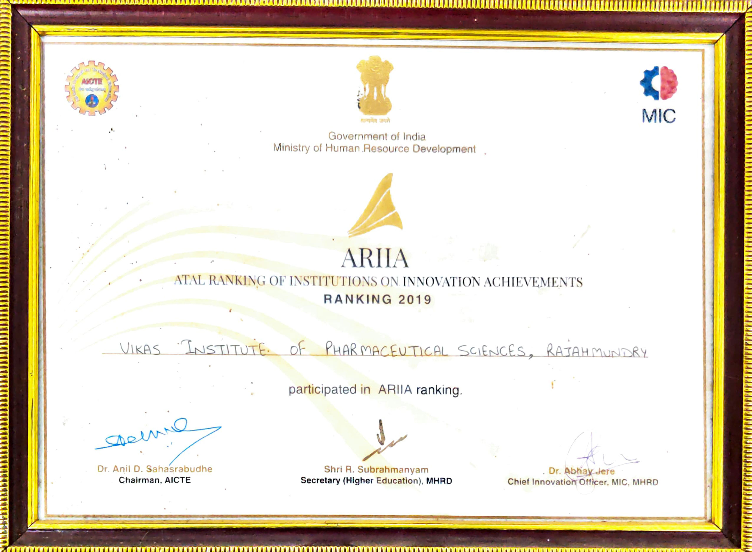 Achievements (ARIIA) is an initiative of Ministry of Education (MoE), Govt. of India to