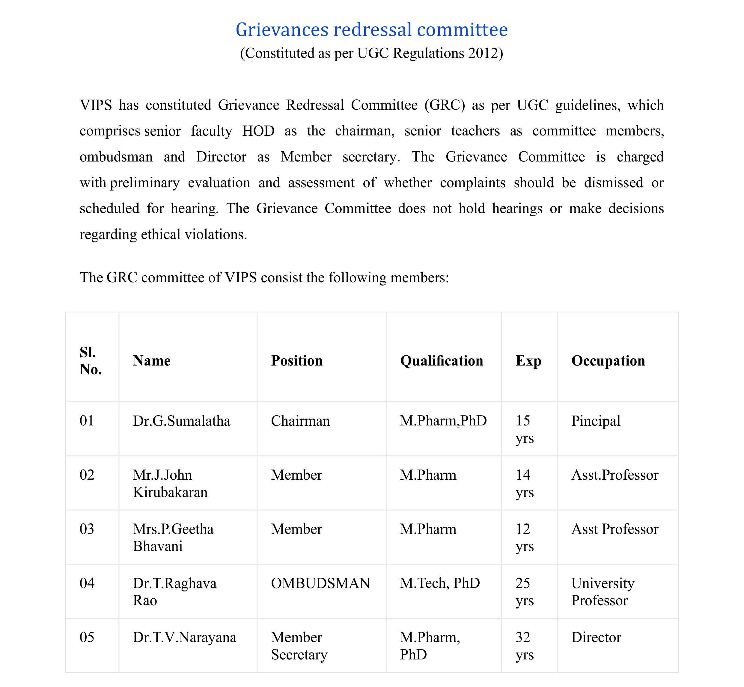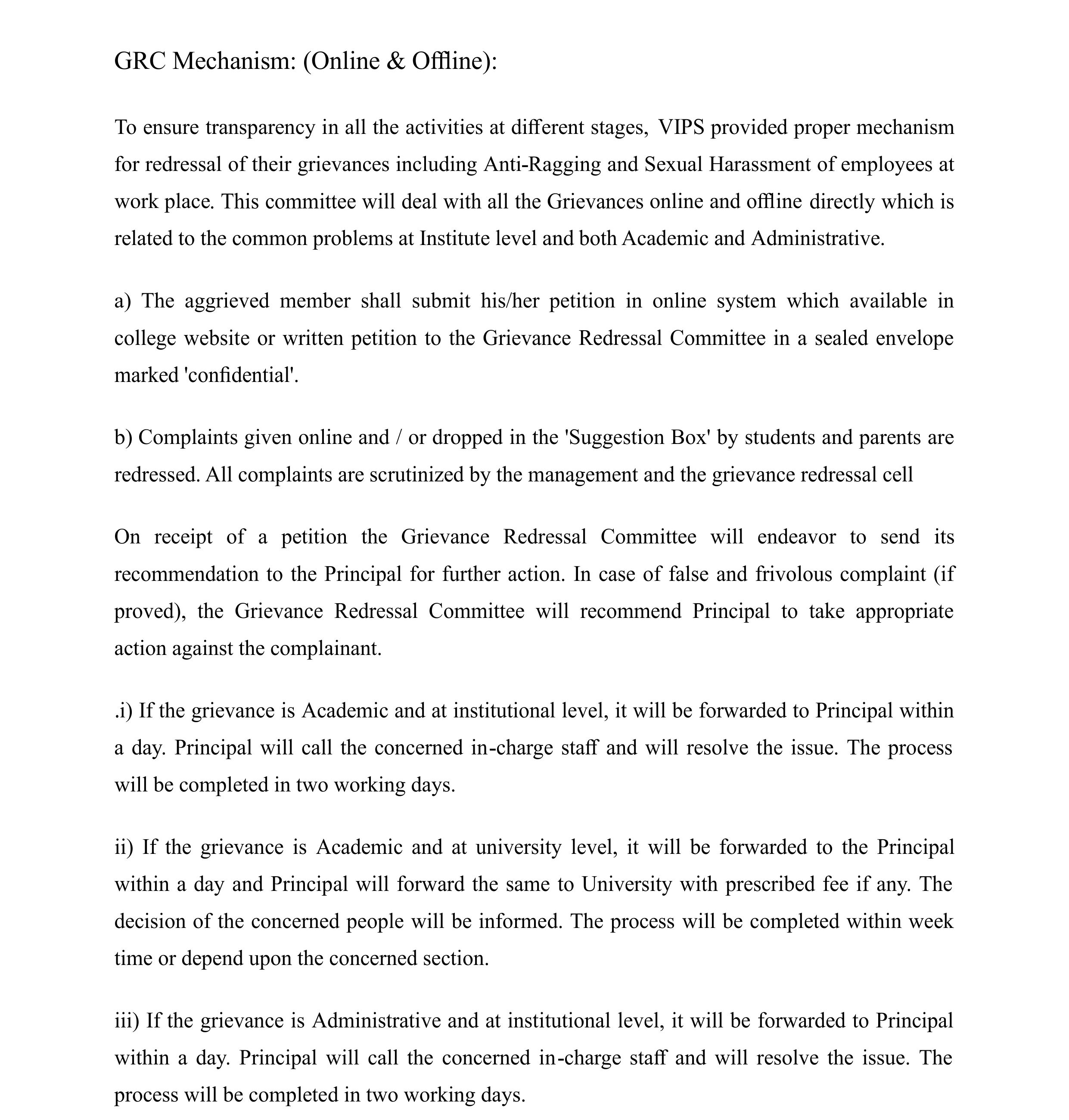 VIPS has constituted online grievance redressal committee for both students and staff as per the circulars of PCI, AICTE and as per directions of UGC. The management of this portal has been assigned to VIPS IT provider vmedulife software services.