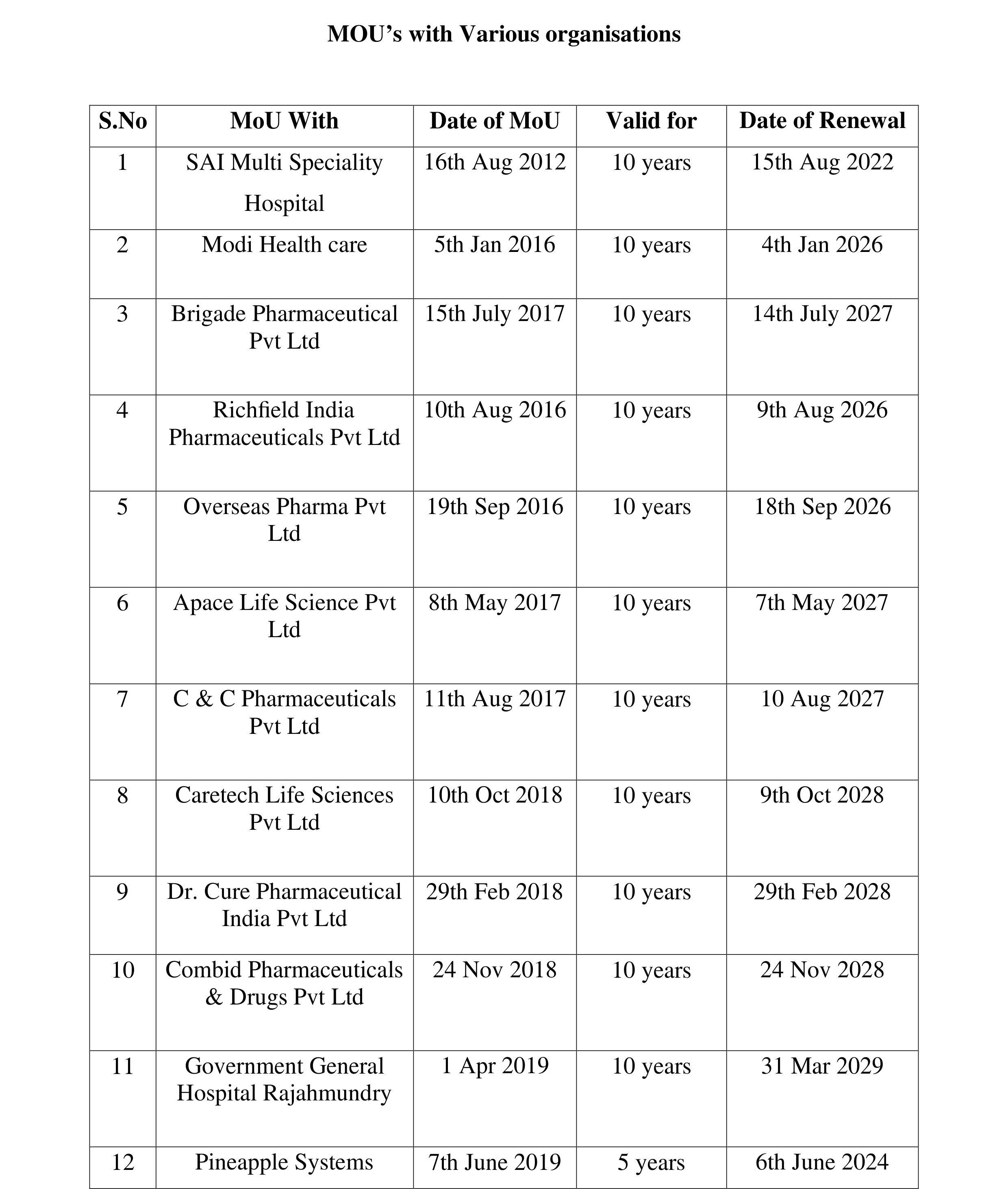 MOU's